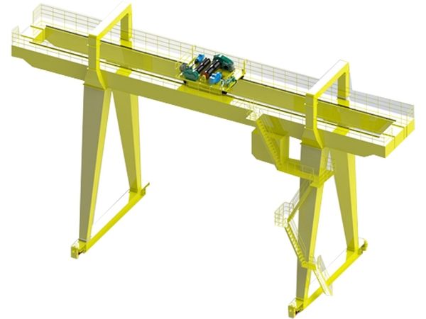 門架分箱形結(jié)構(gòu)和桁架結(jié)構(gòu),主梁采用雙梁偏軌形式,支腿根據(jù)用戶要求分A形和U形兩種。