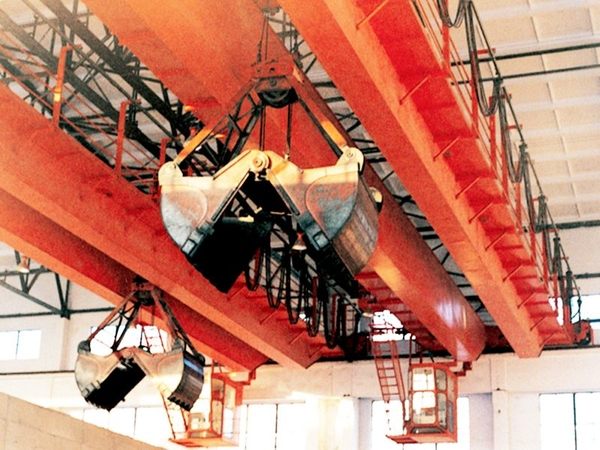 抓斗橋式起重機(jī)主要由箱形橋架、抓斗小車、大車運(yùn)行機(jī)構(gòu)、司機(jī)室和電氣控制系統(tǒng)組成。取物裝置為抓斗。